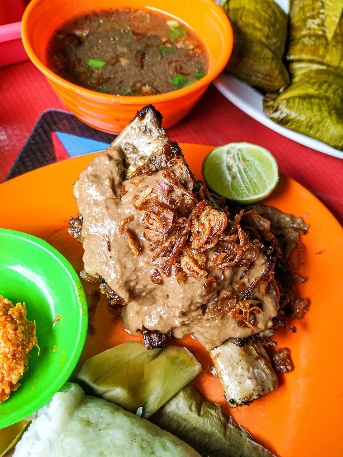 Konro Bakar dengan saus kacang.| Foto oleh Feastin’