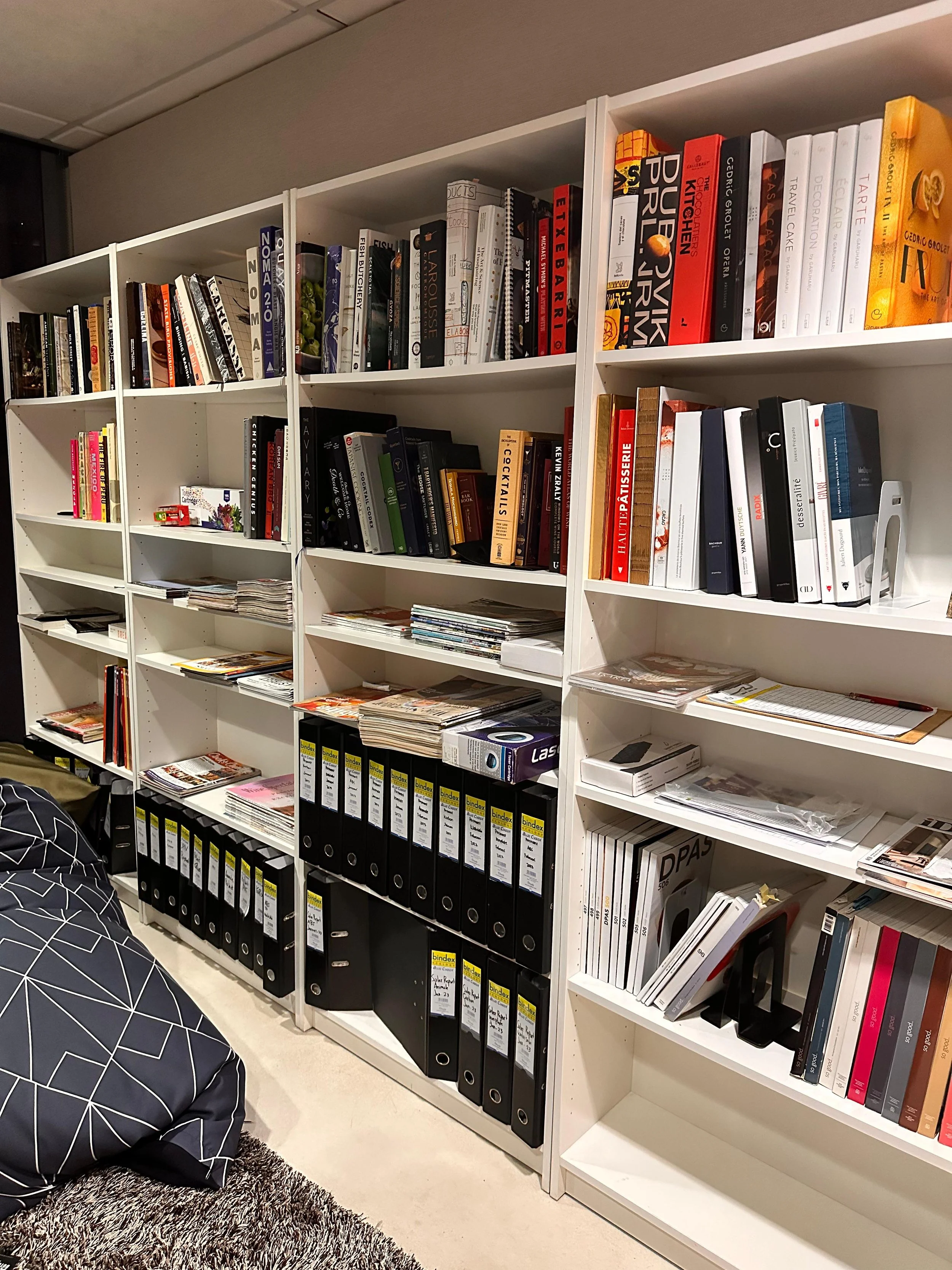 Perpustakaan kecil berisi beragam publikasi kuliner yang ada di kantor Chef Andri | Foto: Sharima Umaya