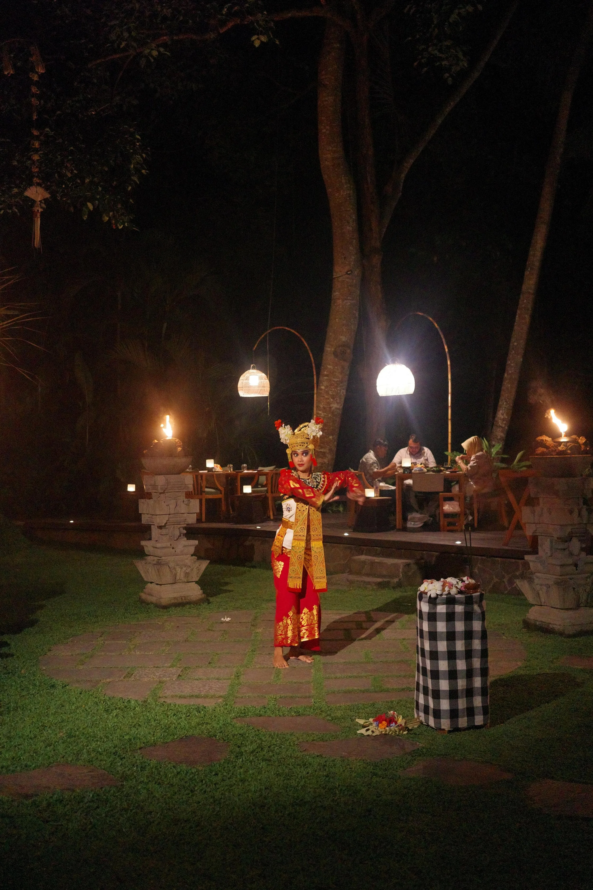 Kami duduk berhadapan dengan hamparan alam yang cukup luas untuk menjadi panggung bagi para penari Bali, yang malam itu tampil anggun di hadapan kami. Mandapa sengaja menghadirkan pertunjukan tari tradisional ini agar para tamu dapat menikmati keindahan budaya Bali tanpa harus meninggalkan kenyamanan properti.